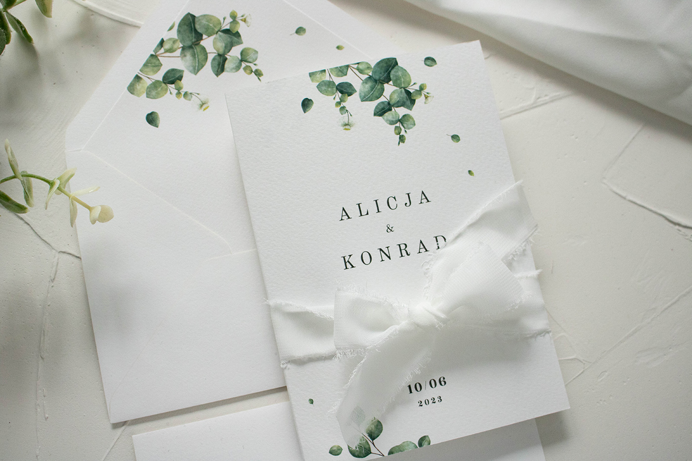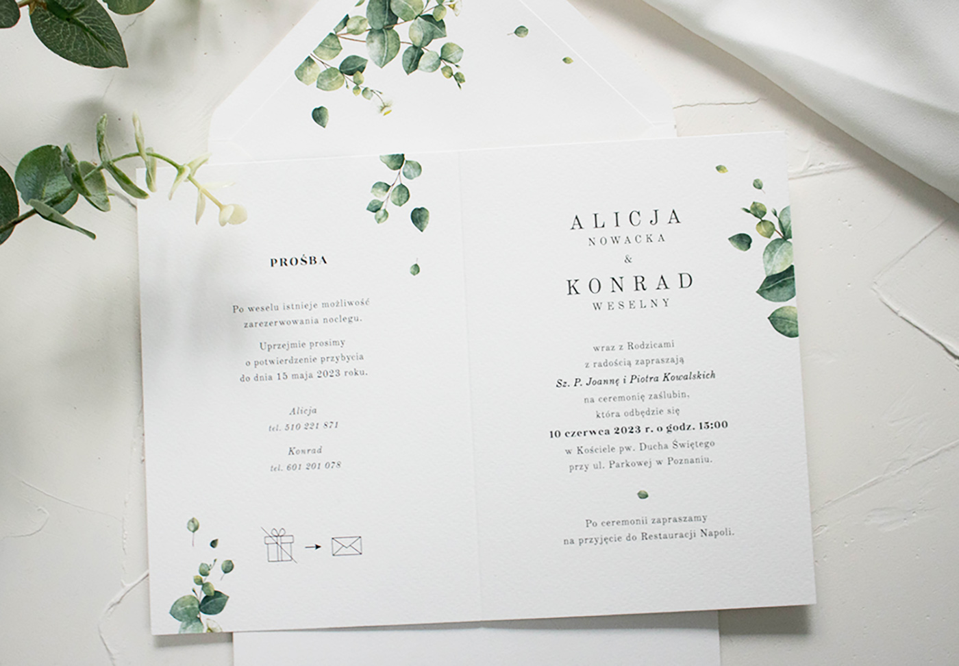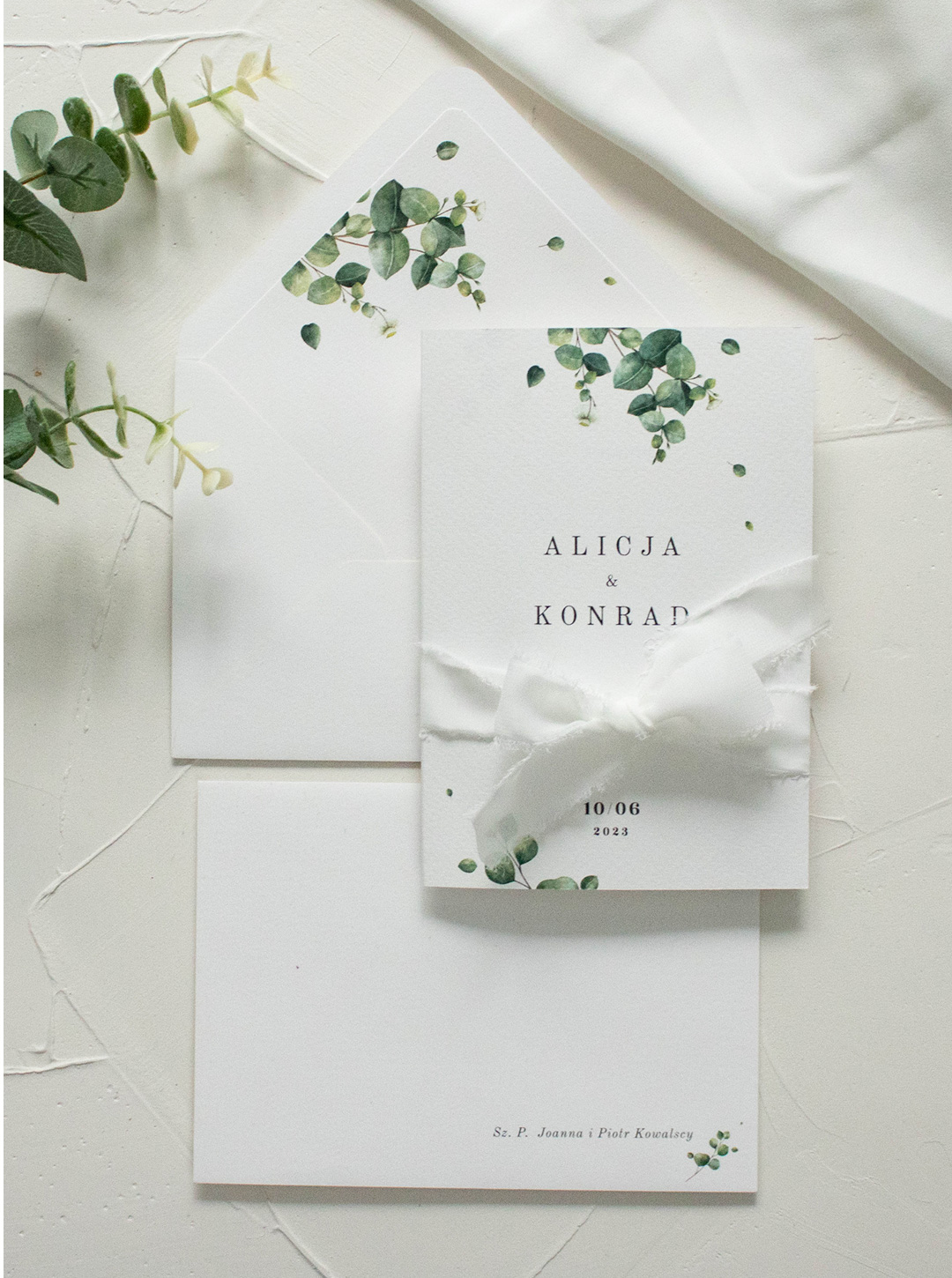 Wymiary zestawu: zaproszenie złożone 170x120 mm, koperta B6.