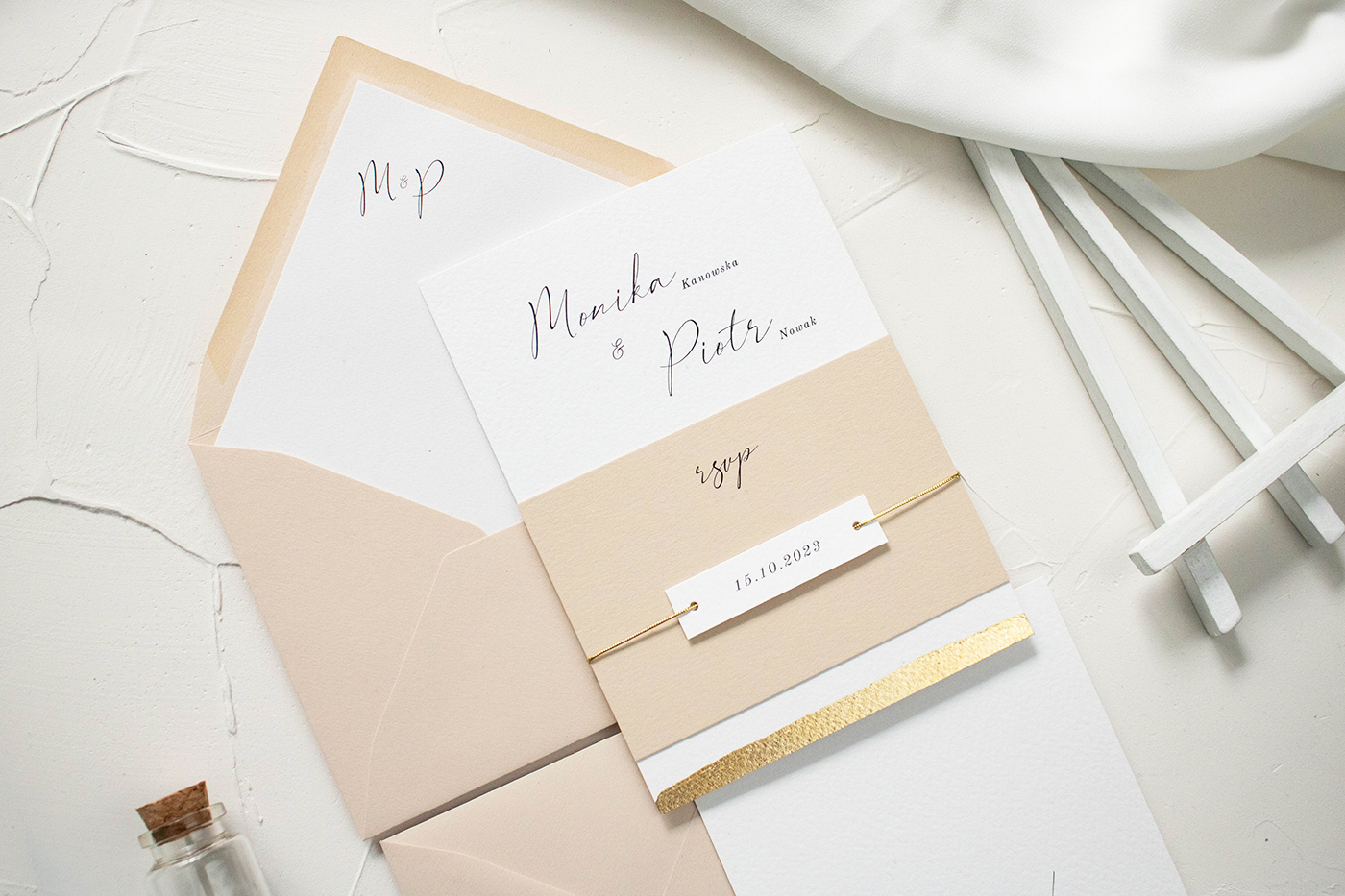 Wymiary zestawu: karta zaproszenia 170x120 mm, koperta B6.