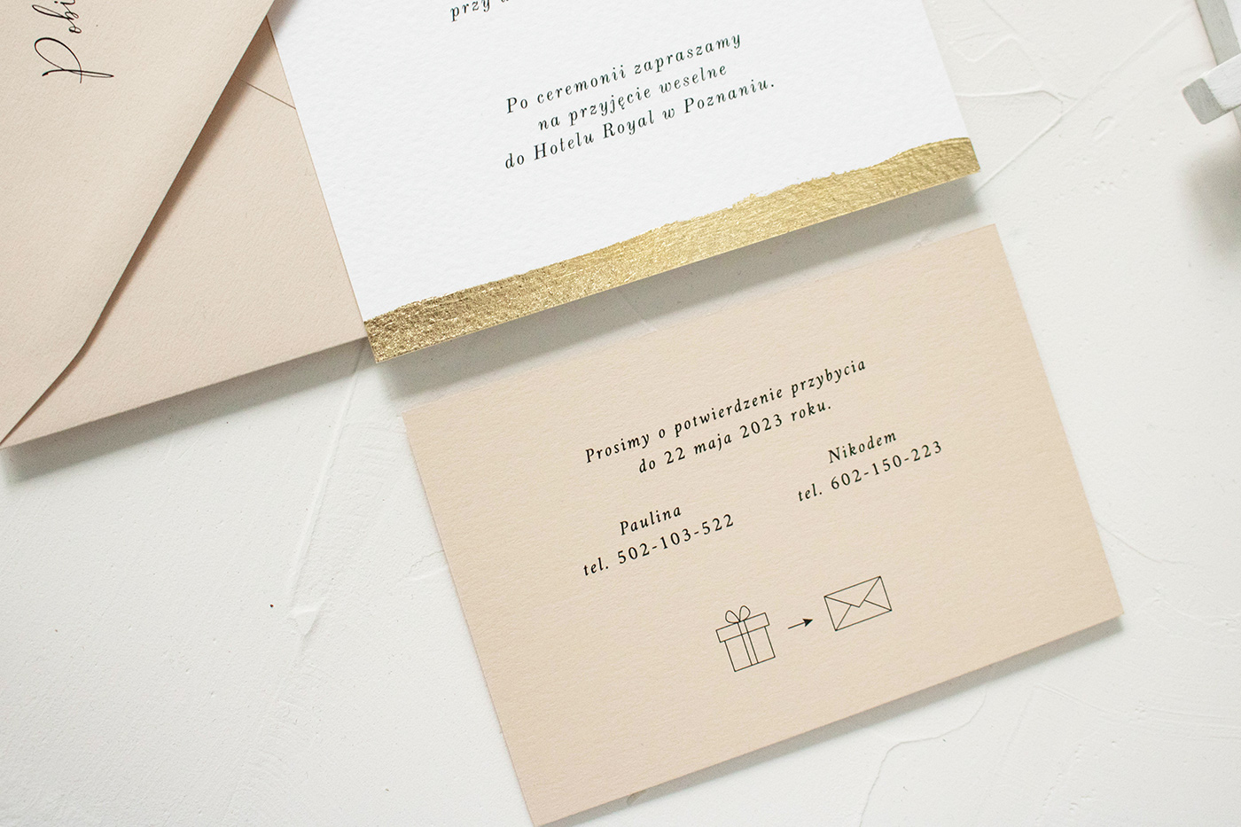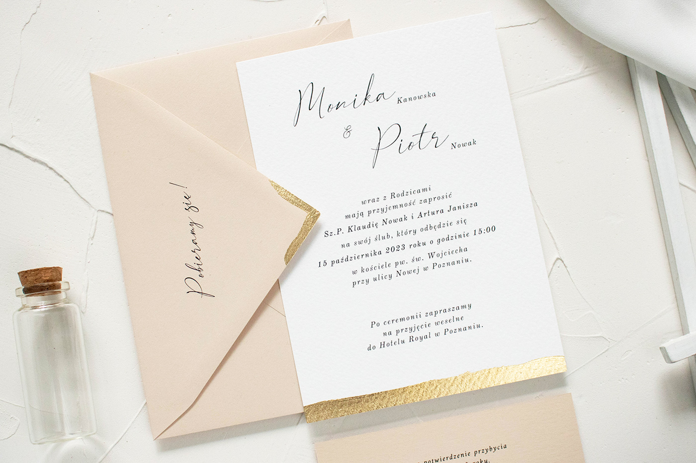 Wymiary zestawu: karta zaproszenia 170x120 mm, koperta B6.