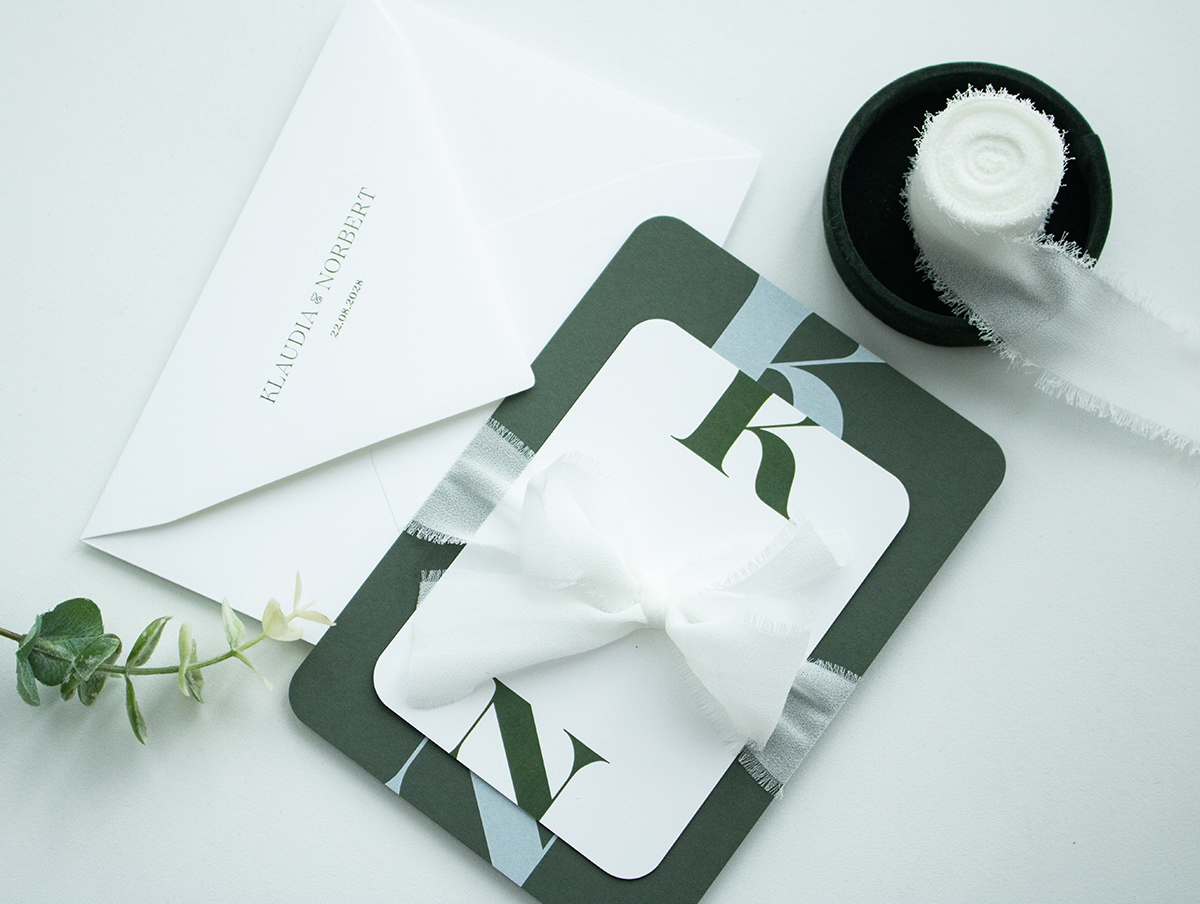 Kolekcja Letters Love wykonana na wysokiej jakości włoskim papierze bordowym. Karta główna i RSVP przewiązane są piękna szyfonową wstążką.