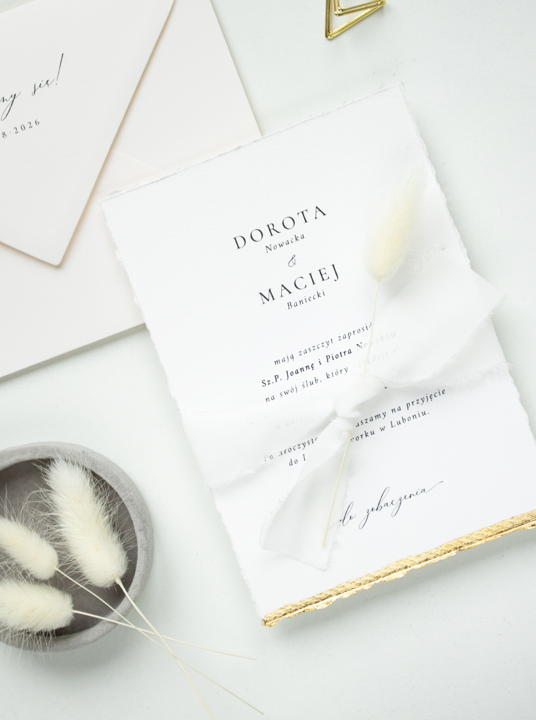 Wymiary zestawu: karta zaproszenia 12x17 cm, koperta B6.