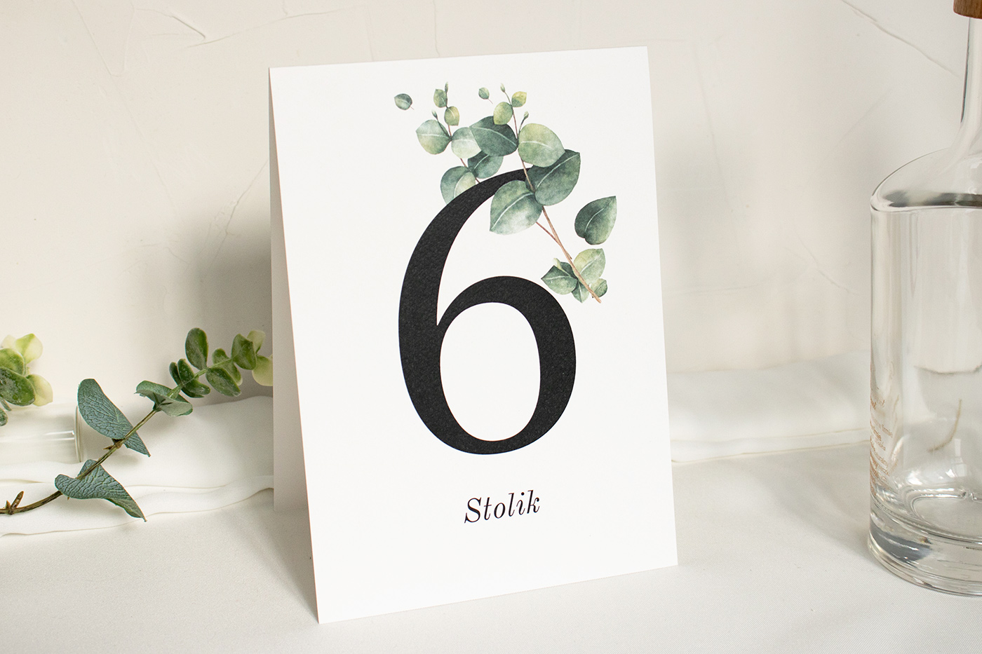 Składane numery na stół wykonane z wysokiej jakości papieru fakturowanego.