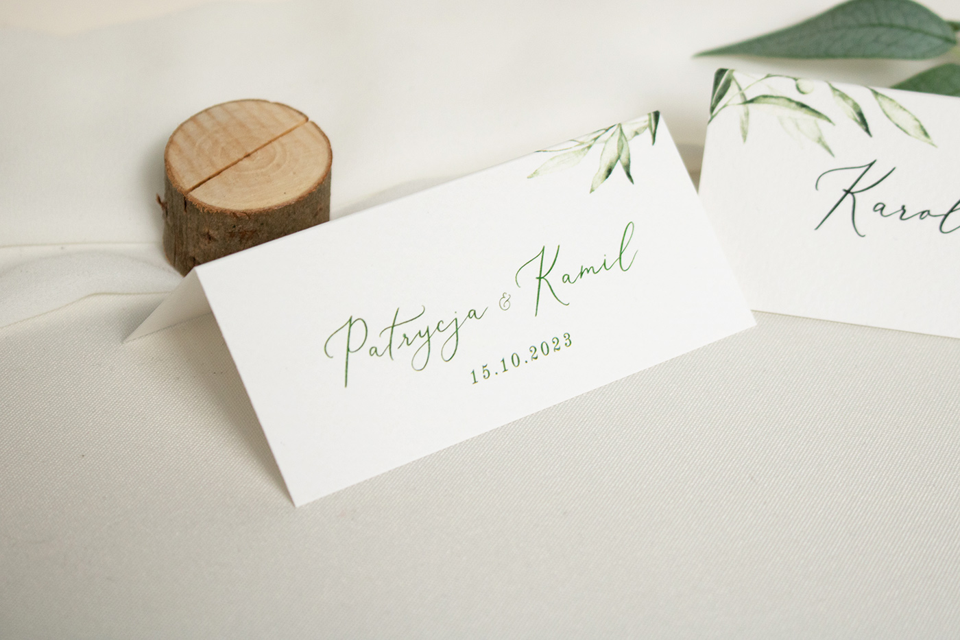 Składane winietki na stół, wykonane na wysokiej jakości włoskim papierze fakturowanym.