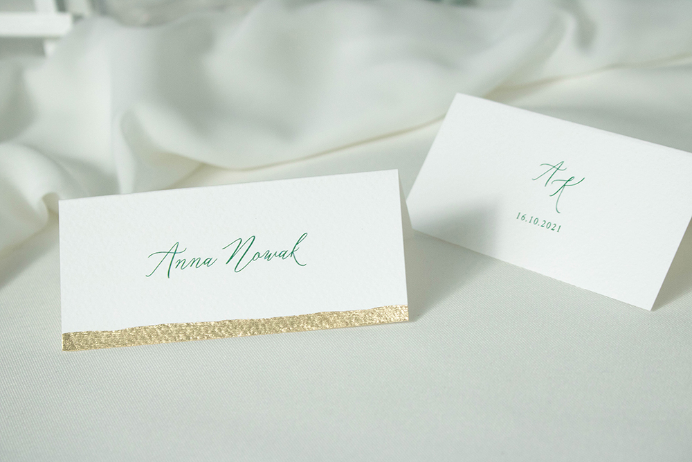 Składane winietki na stół, wykonane na wysokiej jakości papierze.