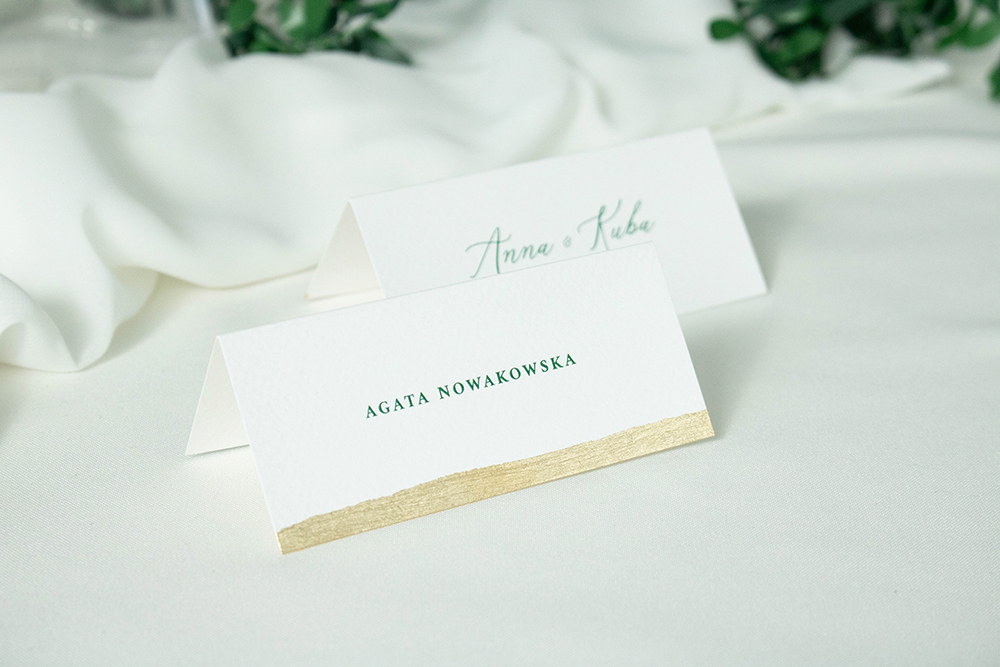 Składane winietki na stół, wykonane na wysokiej jakości papierze.