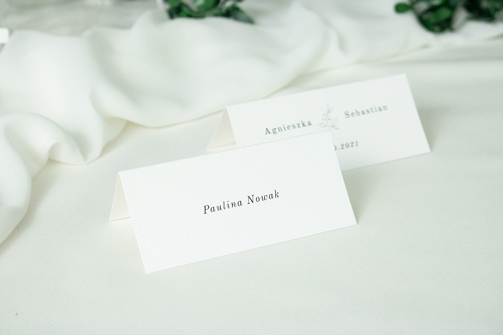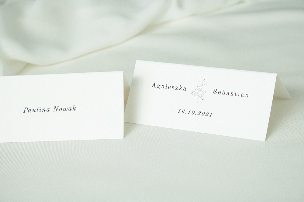 Składane winietki na stół, wykonane na wysokiej jakości włoskim papierze fakturowanym.