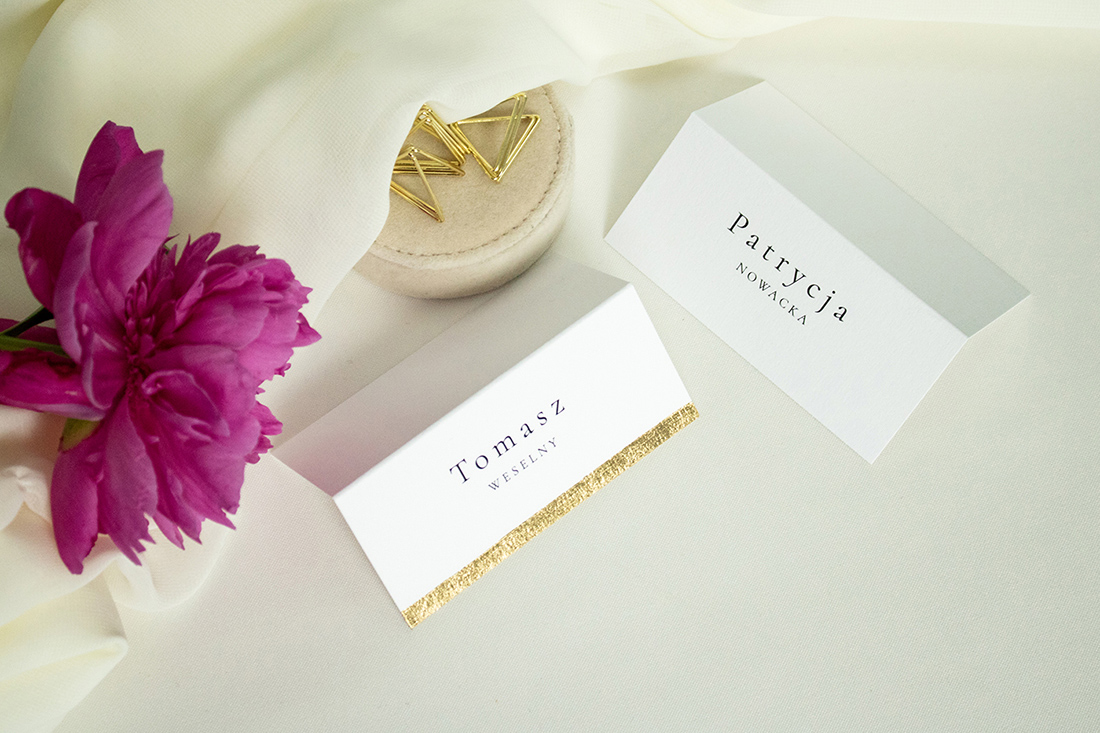 Składane winietki na stół, wykonane na wysokiej jakości papierze.