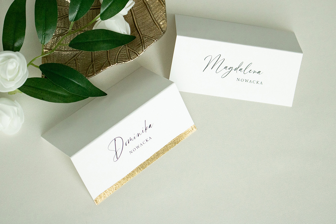 Składane winietki na stół, wykonane na wysokiej jakości papierze.