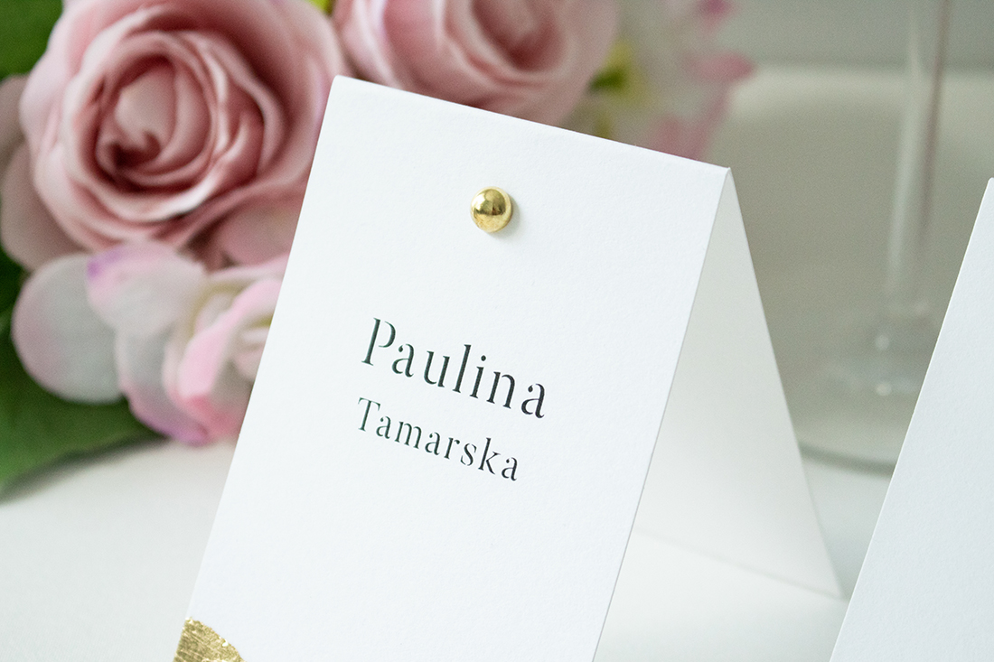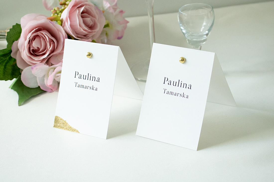 Składane winietki na stół, pionowe, wykonane na wysokiej jakości papierze.