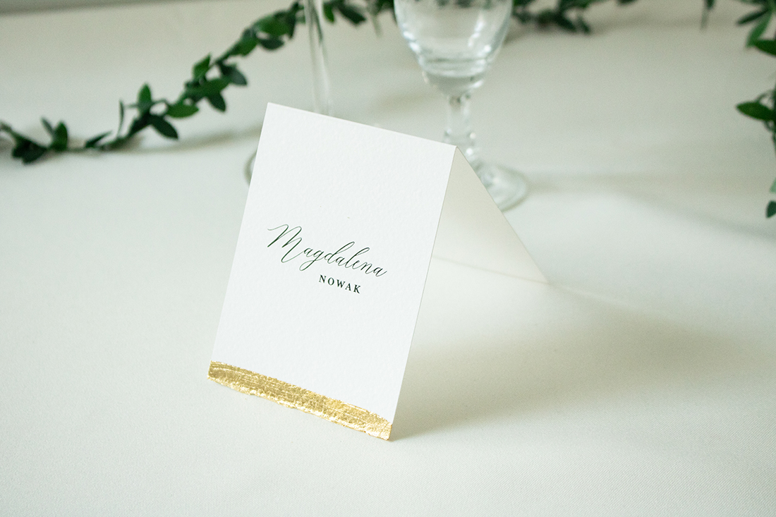 Składane winietki na stół, pionowe, wykonane na wysokiej jakości papierze.