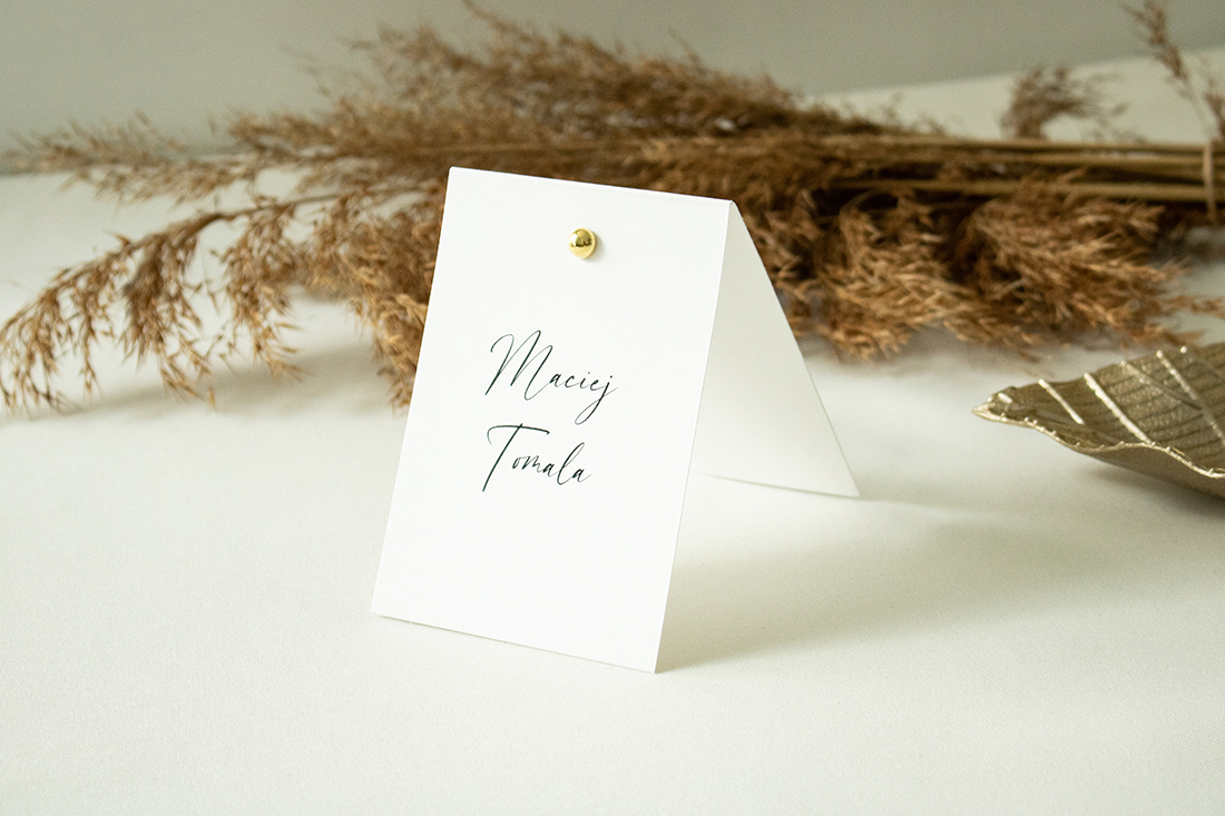 Składane winietki na stół, pionowe, wykonane na wysokiej jakości papierze.