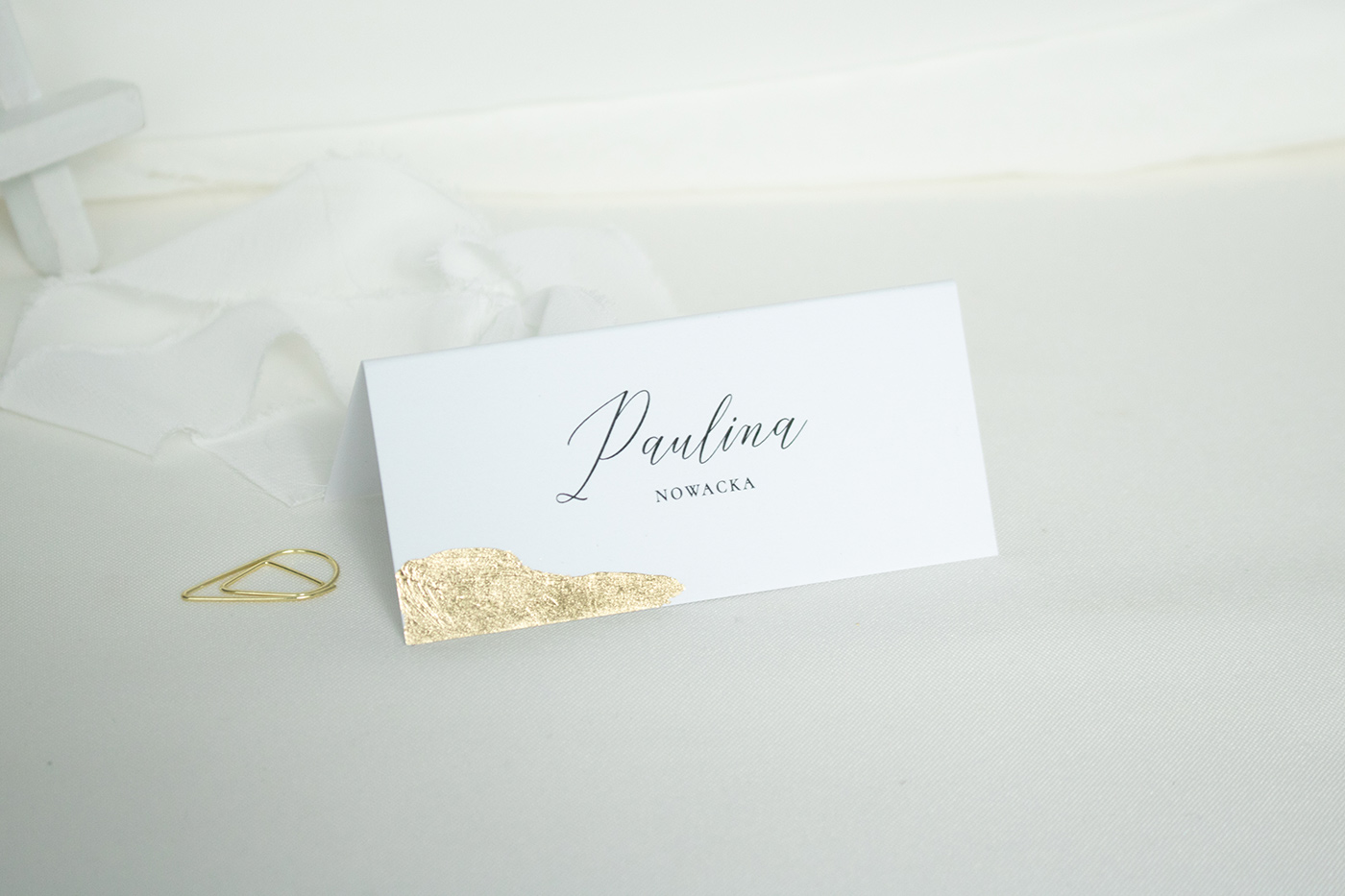 Składane winietki na stół, wykonane na wysokiej jakości papierze.