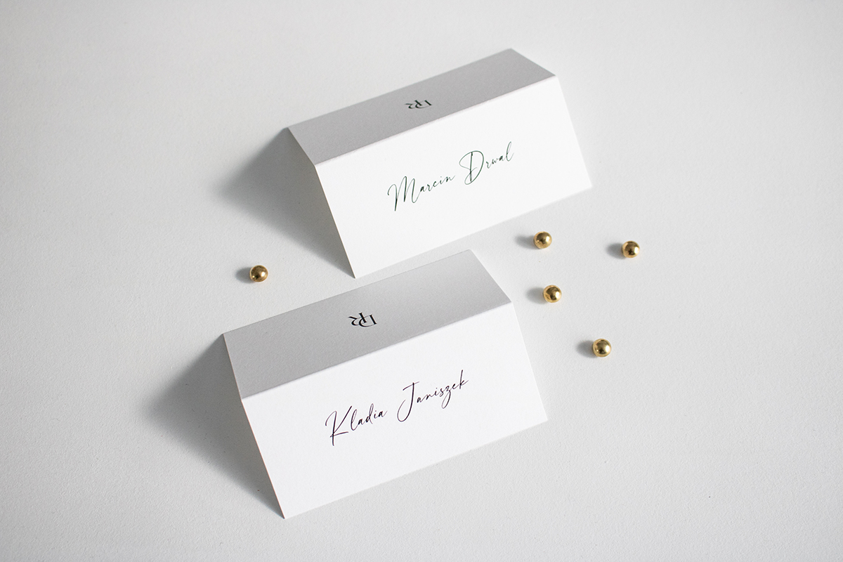 Składane winietki na stół, wykonane na wysokiej jakości papierze.