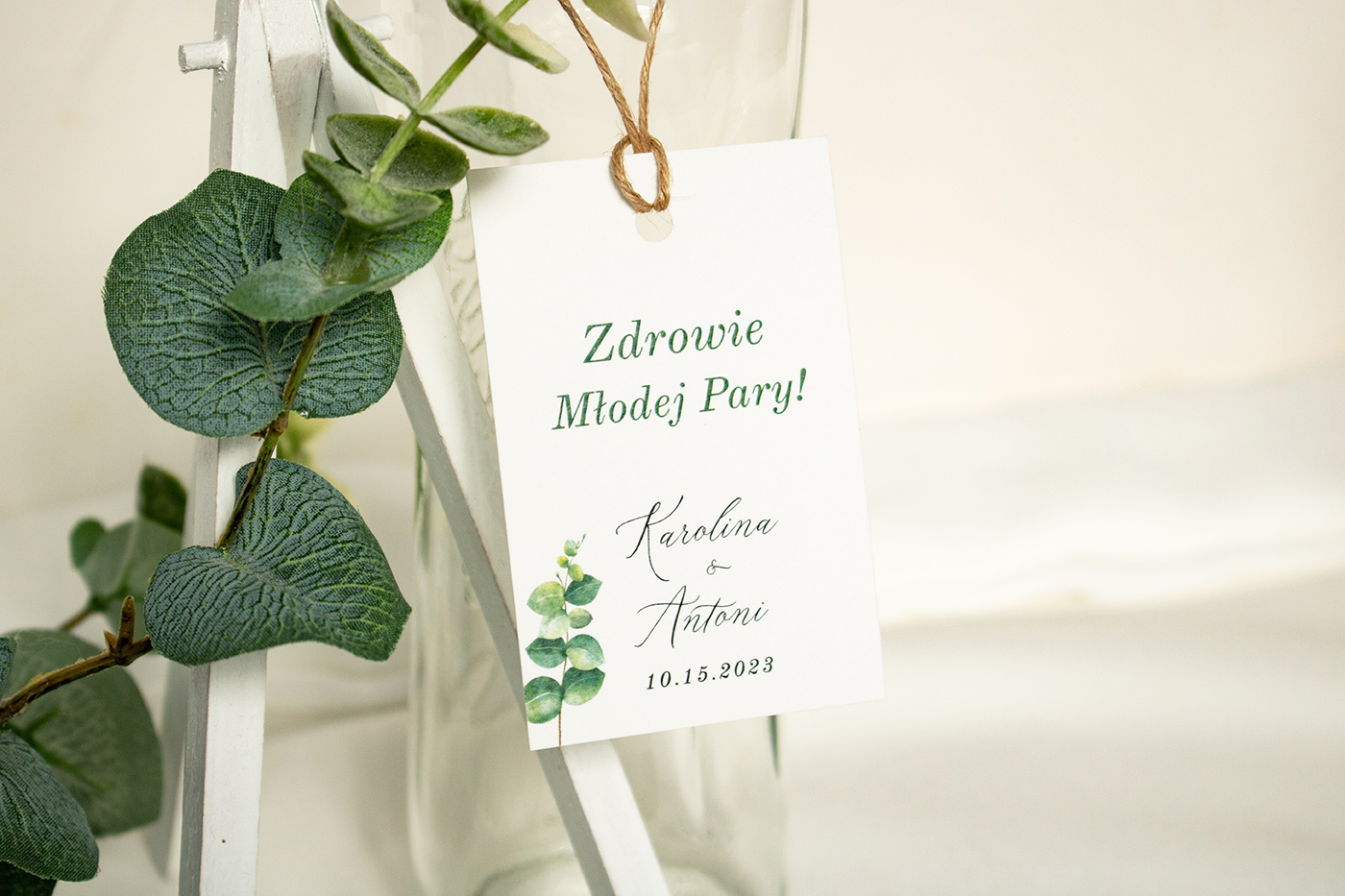Zawieszka na butelki wykonana na wysokiej jakości, włoskim papierze fakturowanym. Wiązana za pomocą ozdobnego sznurka.
